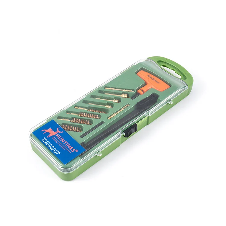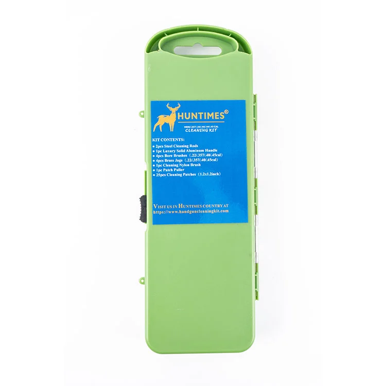 Vårt 9MM/.357/.38/.40/.44/.45 Caliber rengjøringssett designet for pistolen din og har OEM tilpasset grep-logo og emballasje. Dette allsidige rengjøringssettet er perfekt for jaktentusiaster og kommer med et sett med tilbehør skreddersydd for dine spesifikke behov. Settet inneholder to messingrengjøringsstenger, et slitesterkt plasthåndtak, en rengjøringsbørste av nylon, tjuefem renselapper, fire kammerbørster av forskjellige kalibre, fire messingtakker, en plastlapptrekker og en messinglapper.