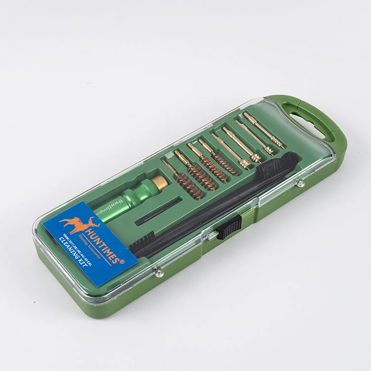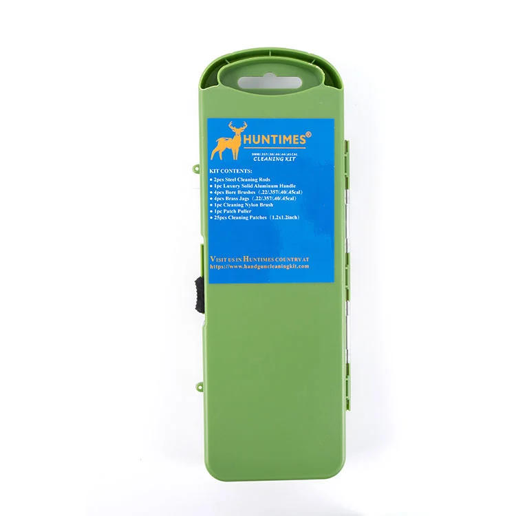 Vårt rengjøringssett for håndvåpen i aluminiumslegering inneholder 2 stålstenger, 1 deluxe aluminiumshåndtak, 4 børster (. 22/. 357/. 40/. 45), 4 messingspisser (. 22/. 357/. 40/. 45), 1 nylonrengjøringsbørste 5x, 1 lappbørste, 1 stk. 2x1. 2 renselapper. Den er designet for optimal ytelse og langvarig holdbarhet. Håndtakslogoen, klistremerkelogoen på forsiden av esken og produktdetaljene på baksiden kan alle utformes i henhold til dine behov. Velkommen til å konsultere oss!