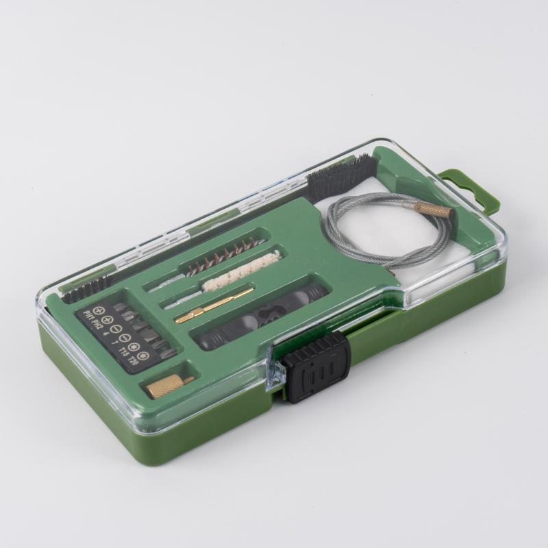 2) Integrert 6-delers skrutrekkersett: I motsetning til standardsett inkluderer vi et 6-delt presisjonsskrutrekkersett med en messingkobling. Dette lar deg utføre feltjusteringer og grunnleggende våpensmeding mens du er på farten.