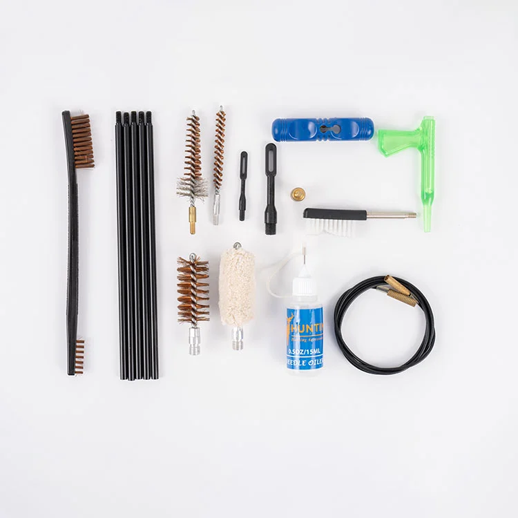 1 stk tilpasset håndtak, 3 stk borebørster (12ga, . 223Cal), 1 stk stjernekammerborebørste (5,56 MM), 1 stk 3-i-1 borebelysning, 1 stk mopp (12ga), 1 stk rengjøringsbørste med 8-32 tråder, 1pc-børstebørste, 1 stk.